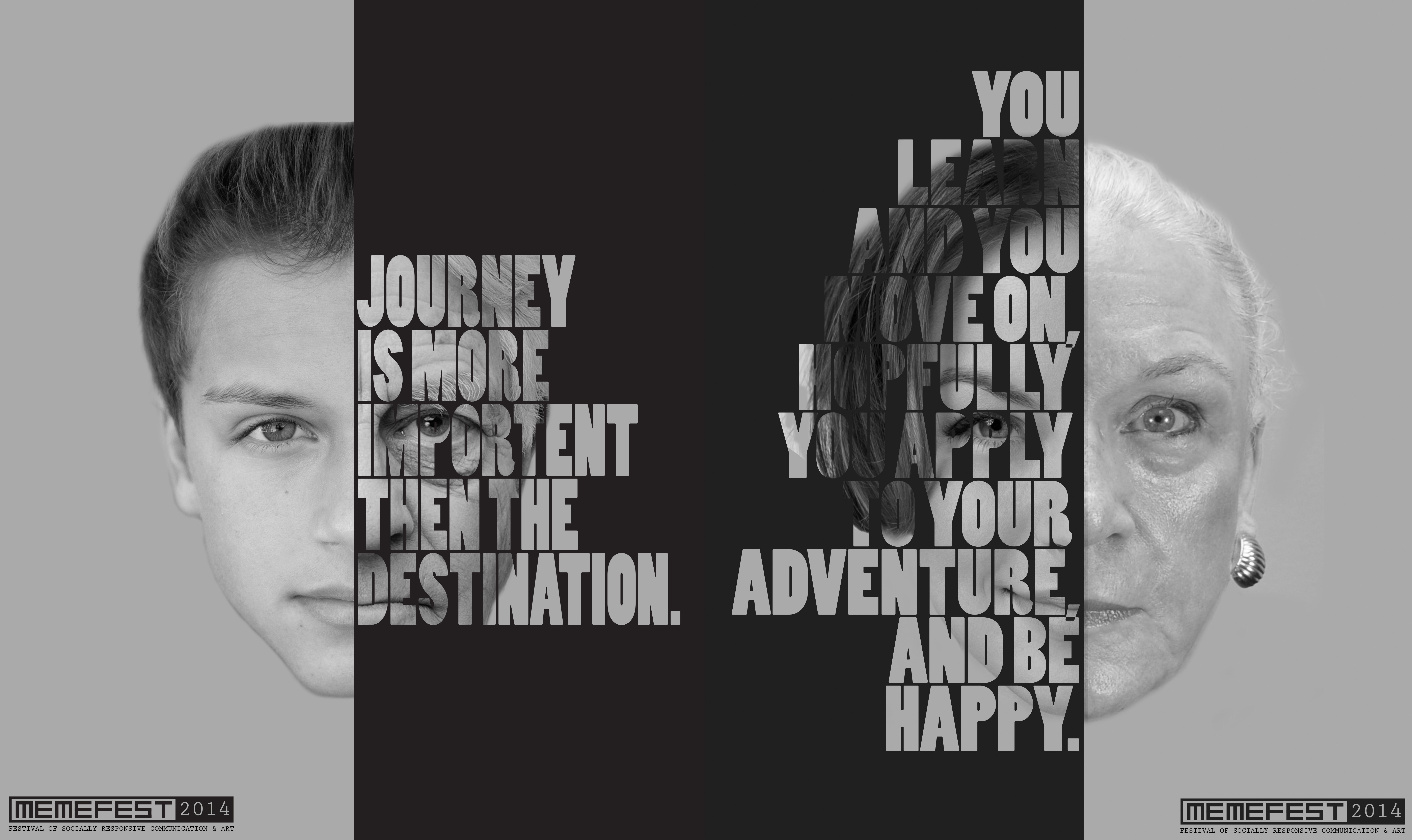 We believe our work has strong responsibility in communication area. The reasons are: 1. It is a short documentary film so it is quite reliable. We are trying to uses real and ordinary examples to tell people to look back and never do something regret. 2. The posters have clearly visual effect that combined by photo and text. While you read the words, you also see the half faces that represent old and young. I believe they will let people think about their life.