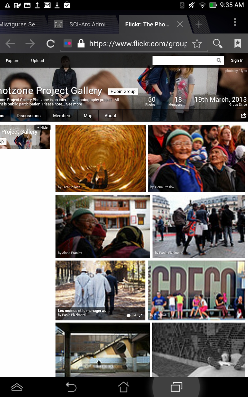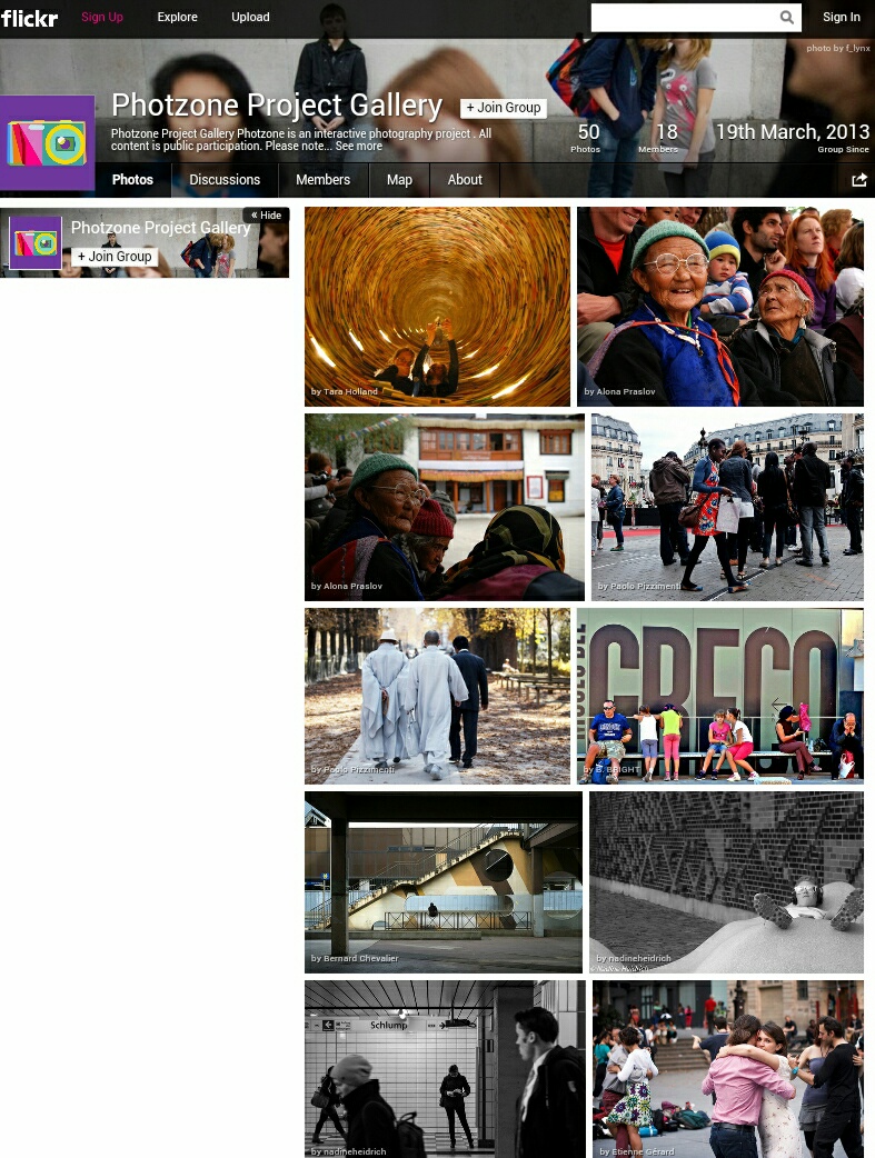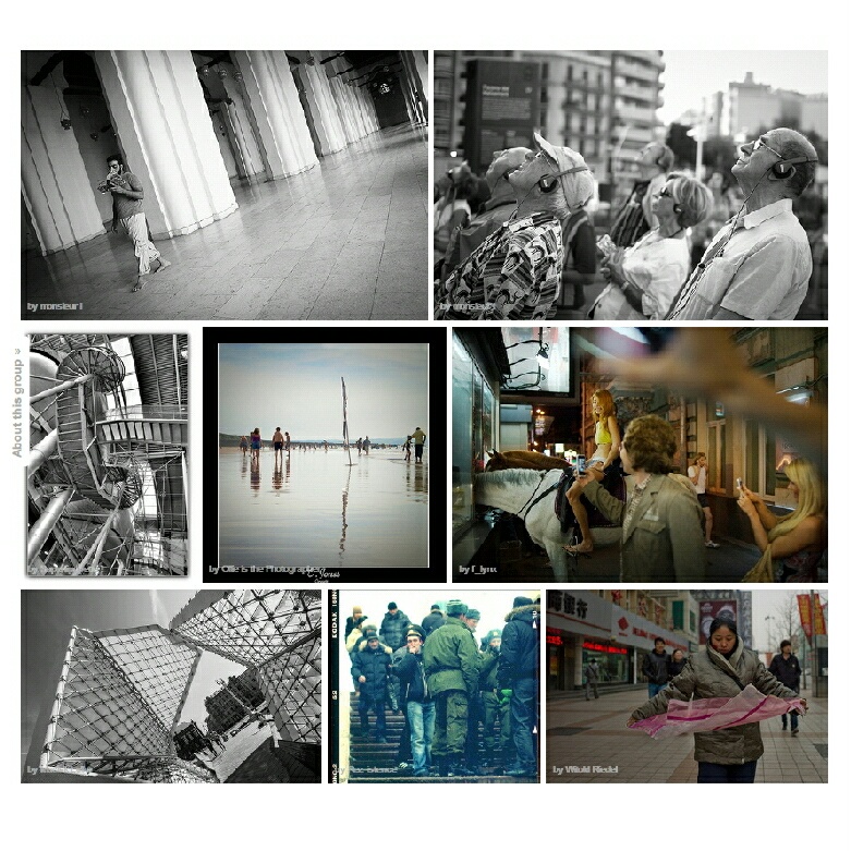 Photos taken using a cell phone camera. Quick snaps; reportage. Taken of people in 'public' spaces (with their consent), people that in the photographers opinion look 'comfortable' - that is they are 'comfortable' with themselves - a comfort zone between the photographer and the subject. Photos are uploaded via the project website, flickr and interactive screen. Uploads are immediate via flickr and a mobile phone widget (bluetooth) on the project website. The project is active as a Net Art , gallery and web structure and event space gallery projections are in the process of application solicitation. Depending on the screening selected, the photos can display as animated panes (windows, see sketch) that update as photos are uploaded onto the flickr/ project website, or the photos display on the wall screen as a random photo cloud (Bluetooth) - the images replenished randomly on a loop. The interactive screen uploads photos immediately point and shoot at the screen! Priority to photos uploaded within the vicinity of the event emphasizes the folds of the space where the audience can (perhaps) see their own photos displayed while contemplating the events dialogues interactions unfolding. LED panels animated stills (6 pane window frame) from flickr Phtzone gallery (see diag phtzpg1). Photos replenish as photos are uploaded. Details of phtz display on screen. The event space is a dynamic folding space with infinite ‘product’ possibilities (Deleuzian space), in an architectural context , “The fold is the general topology of thought... ‘inside’ space is topologically in contact with the ‘outside’ space... and brings the two into confrontation at the limit of the living present." (1.Deleuze, Gilles. Foucault. University of Minnesota Press, 2000 p. 118-19 ) communicative space open to transitory art and transitions to digital media, generating fresh perspectives and analysis; the panes are intimate frames, the installation folds events in an evolving continuum.
