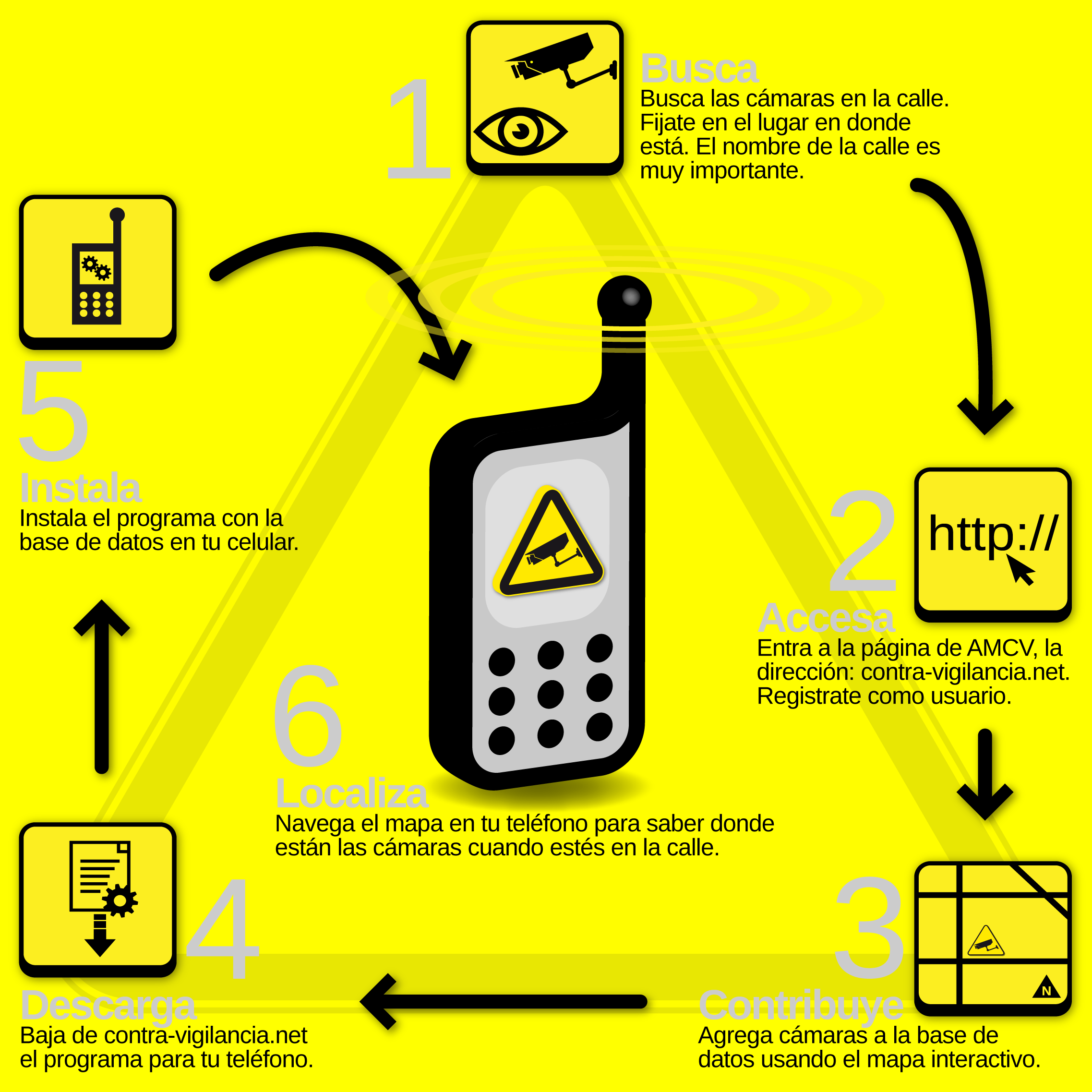 AMCV is a tool that allows anyone with a computer or a mobile phone to have knowledge about the location of surveillance cameras and aims to debate about the widespread use of surveillance and its effects on the public spaces and the privacy of the individual.