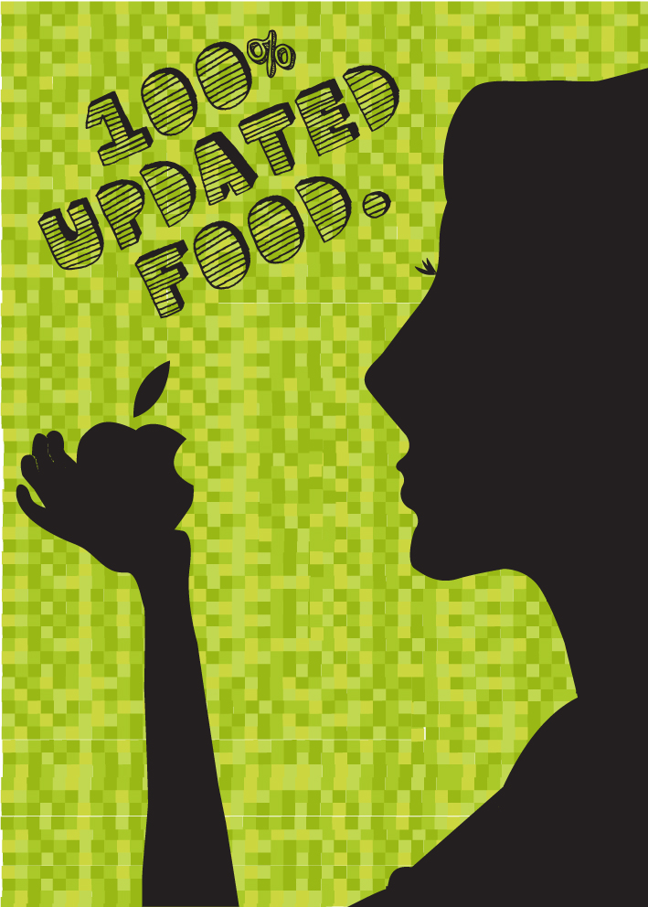 “100% Updated food” has a message that people can easily understand, it makes them aware of the inorganic products that we ca find in supermarkets and grocery stores and that are being genetically modified to look, taste, and be "better" than organic products.