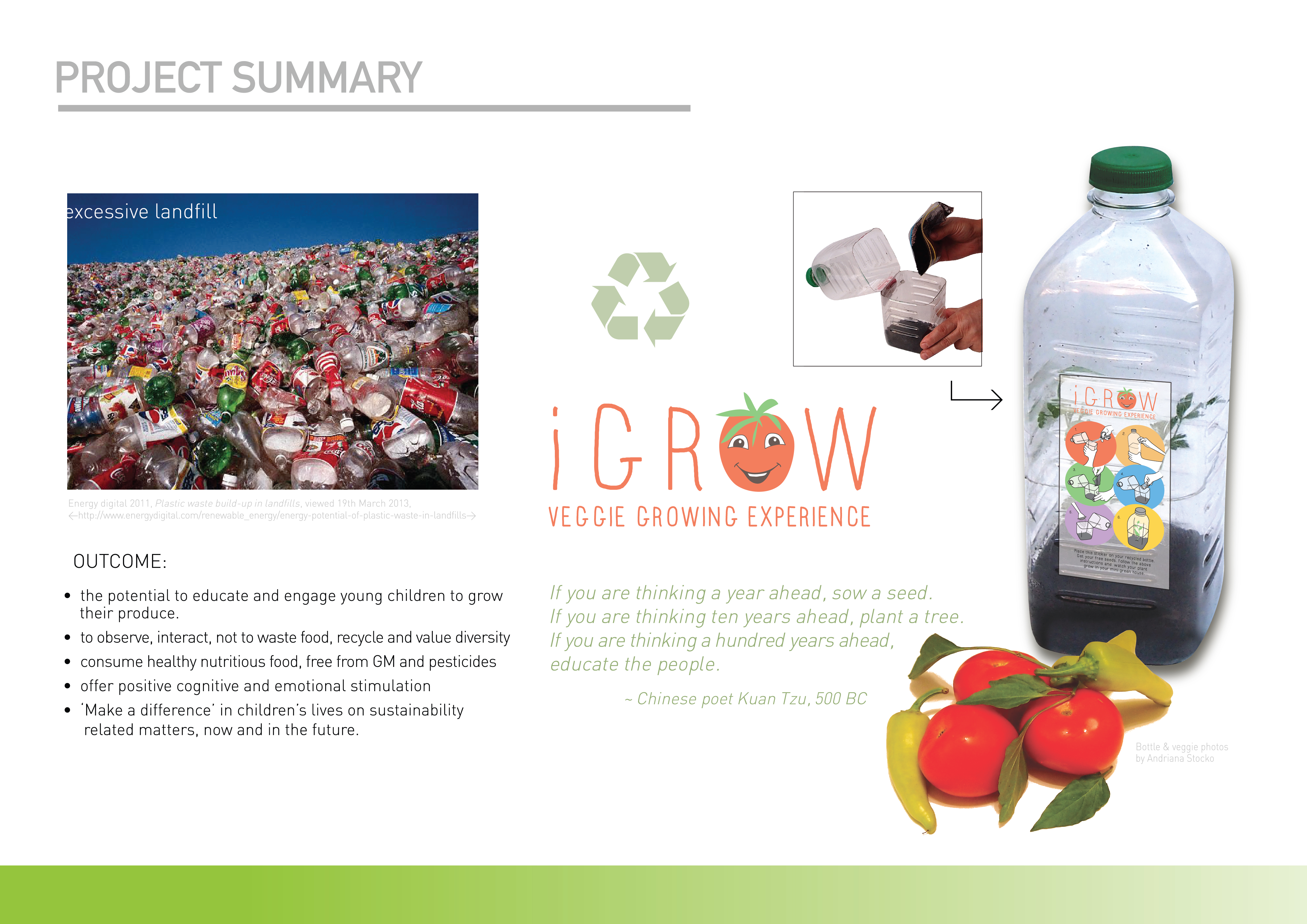 The experience aims to provide teamwork, respond to change, educate children how to grow fresh, pesticide and GMO free food. To not waste, be resourceful and responsible towards the environment.