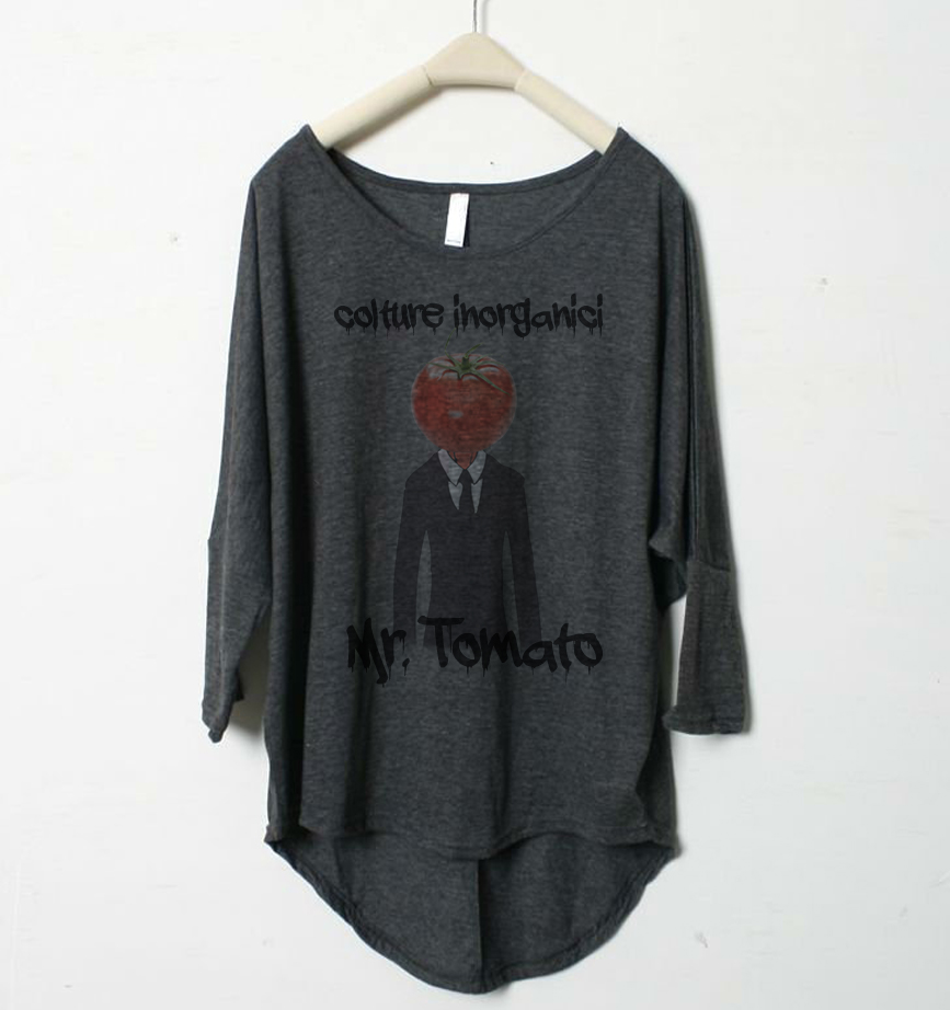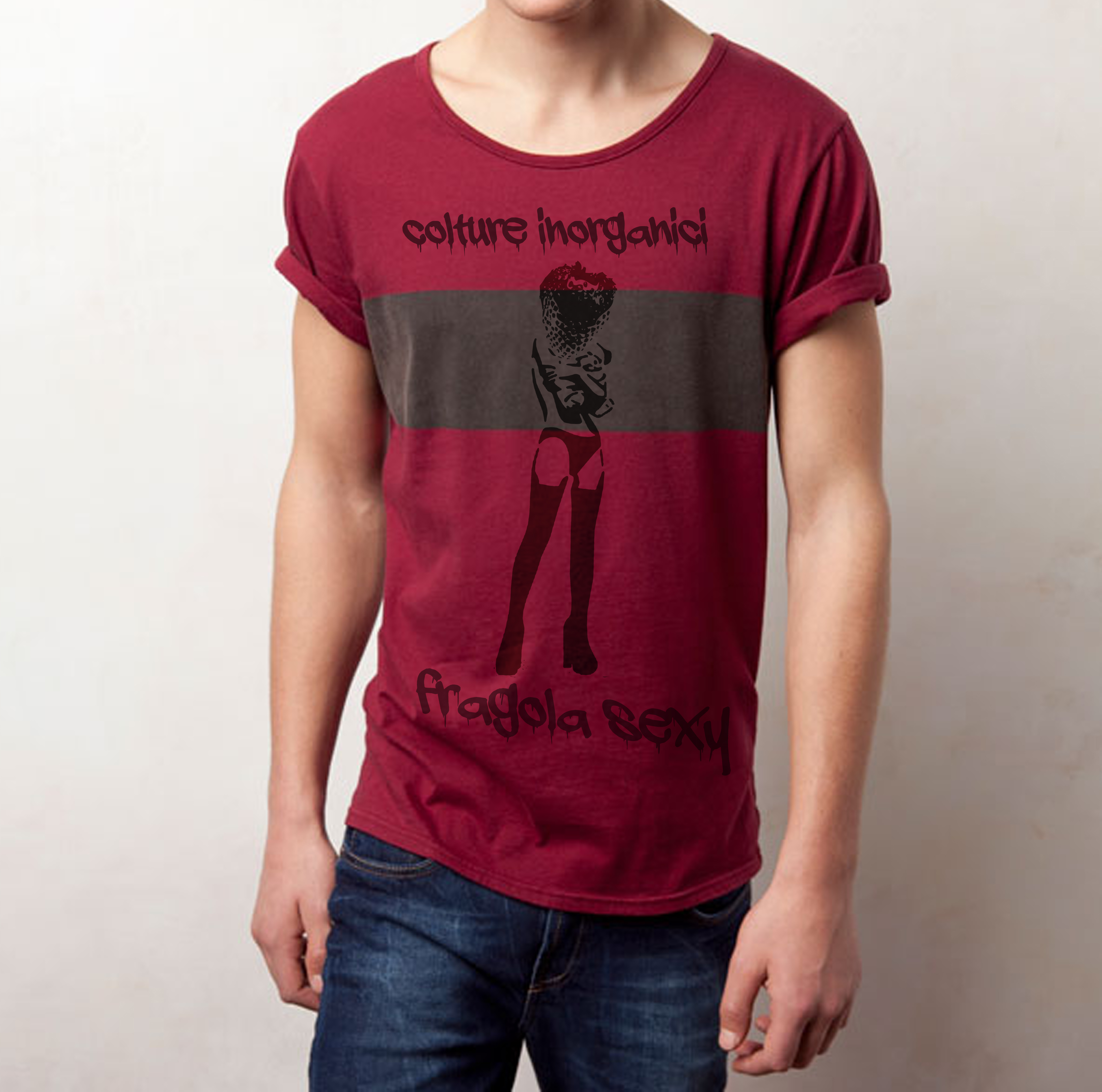 I have played with that aesthetics that have given to genetically modified foods. I took two products alterated, strawberry and tomato, I played with the advertising of those products which are big, strong and provocative. I do a series of shirts for men and women, who perform an exaggeration of food handling, to become people and make a protest to these genetically engineered products.