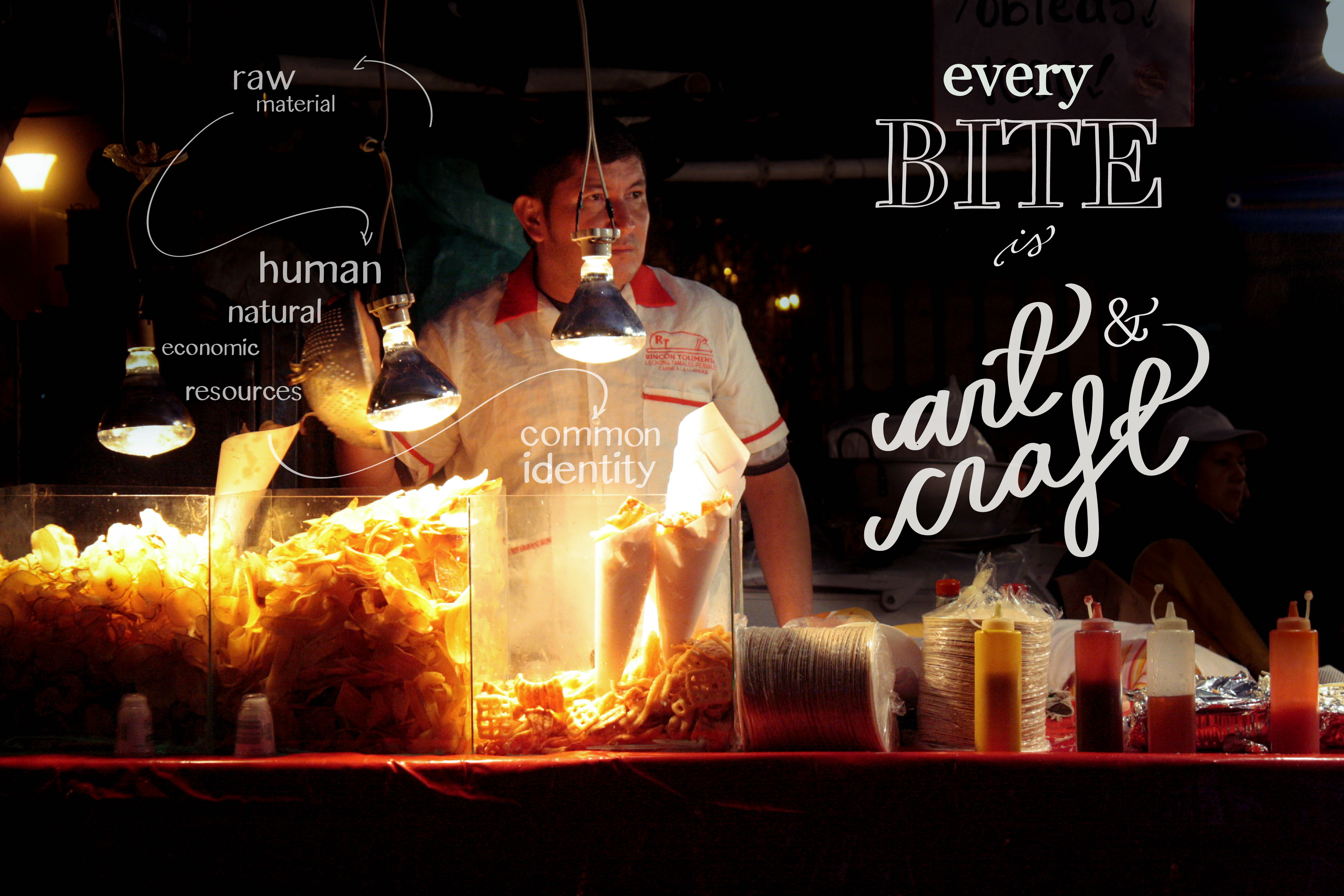 My idea represents a call back to the craft work, it is about how a task as simple as food processing and commercialising involves the human, the natural and the economic resources of a community and produces items with common identity.