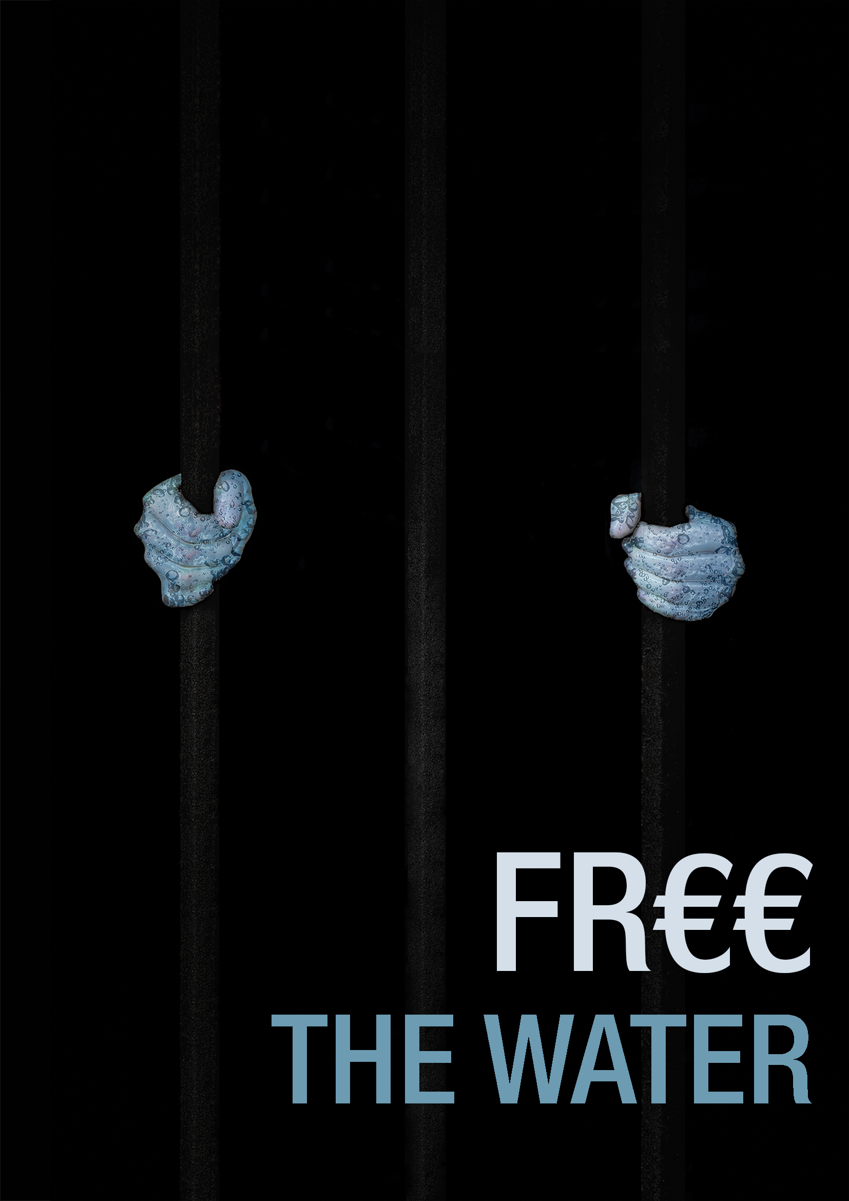 It is a photo montage. I used a strong type face. The whole poster is mostly in dark gray/black colour. That is why the blue water hands and the typography stand out.