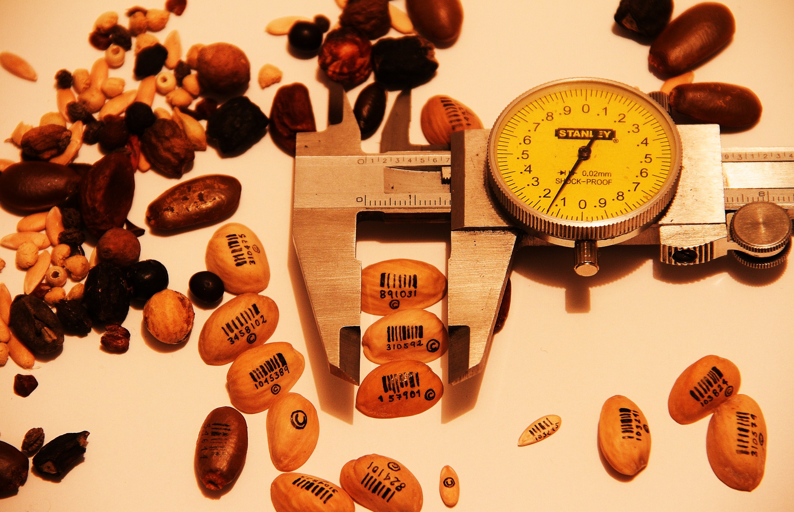 Luz Adriana chose the seeds and made the marks of copyright and barcodes on them, then William Andrés took the picture.