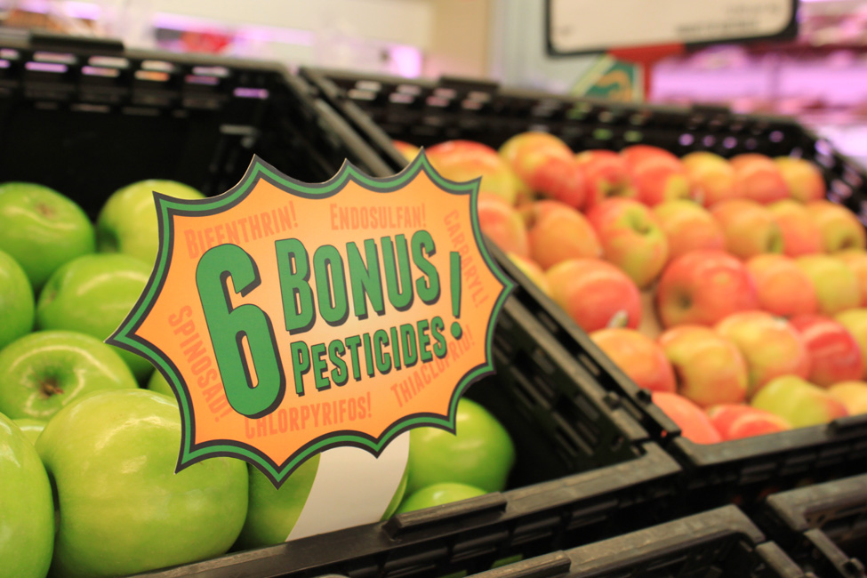 • There are a number of pesticides sprayed on apples during their growth including; Chlorpyrifos, Bifenthrin, Carbaryl, Endosulfan, Thiacloprid and Spinosad.