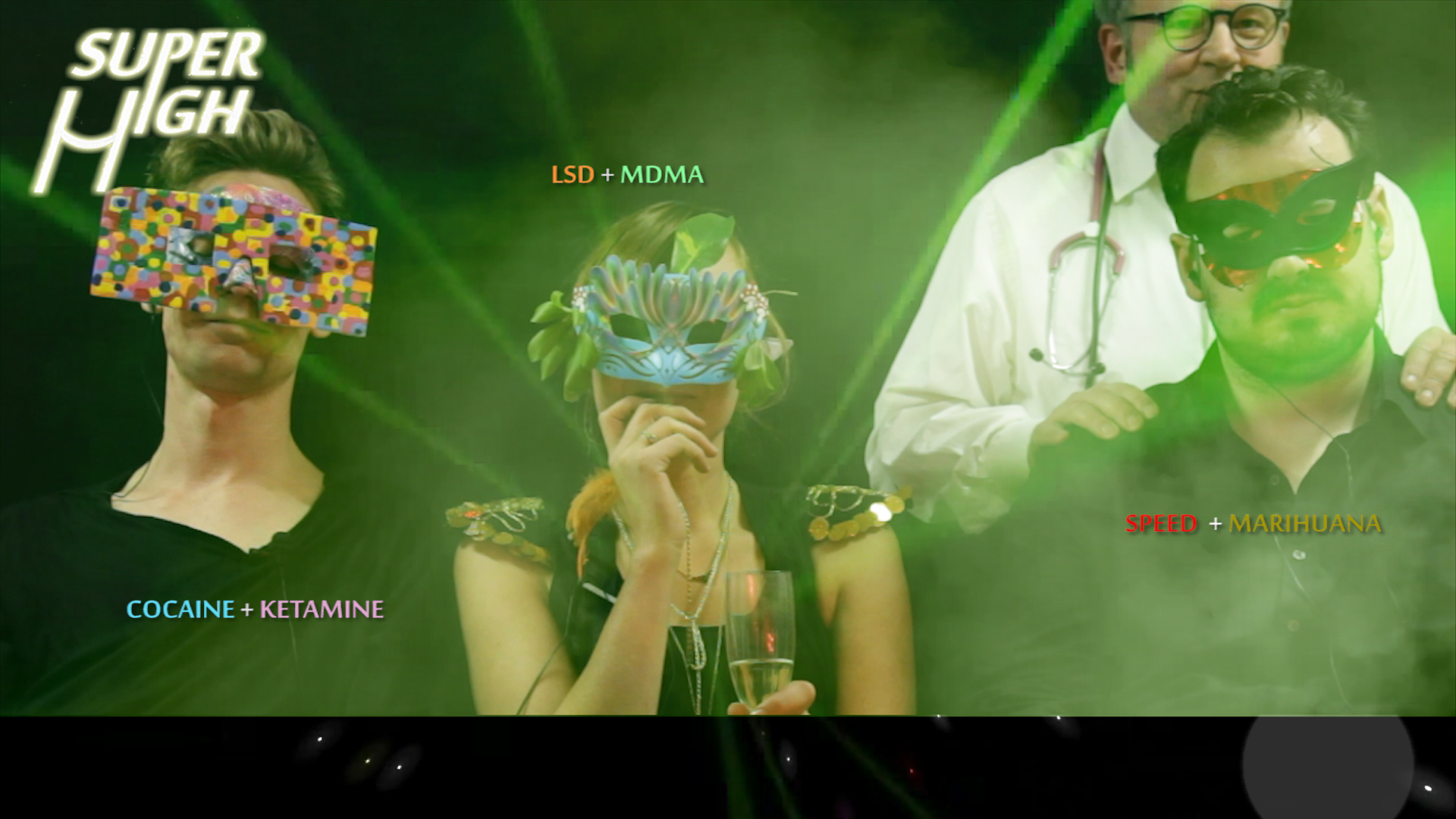 German artist duo Boris Eldagsen and Sabine Taeubner produced SUPERHIGH, a 40-minute film using mockumentary and reality-show elements to create a clash between drug-free and classic drug highs. SUPERHIGH proposes an online dialogue at http://superhigh.arte.tv – commencing on World Television Day, November 21st, 2013.