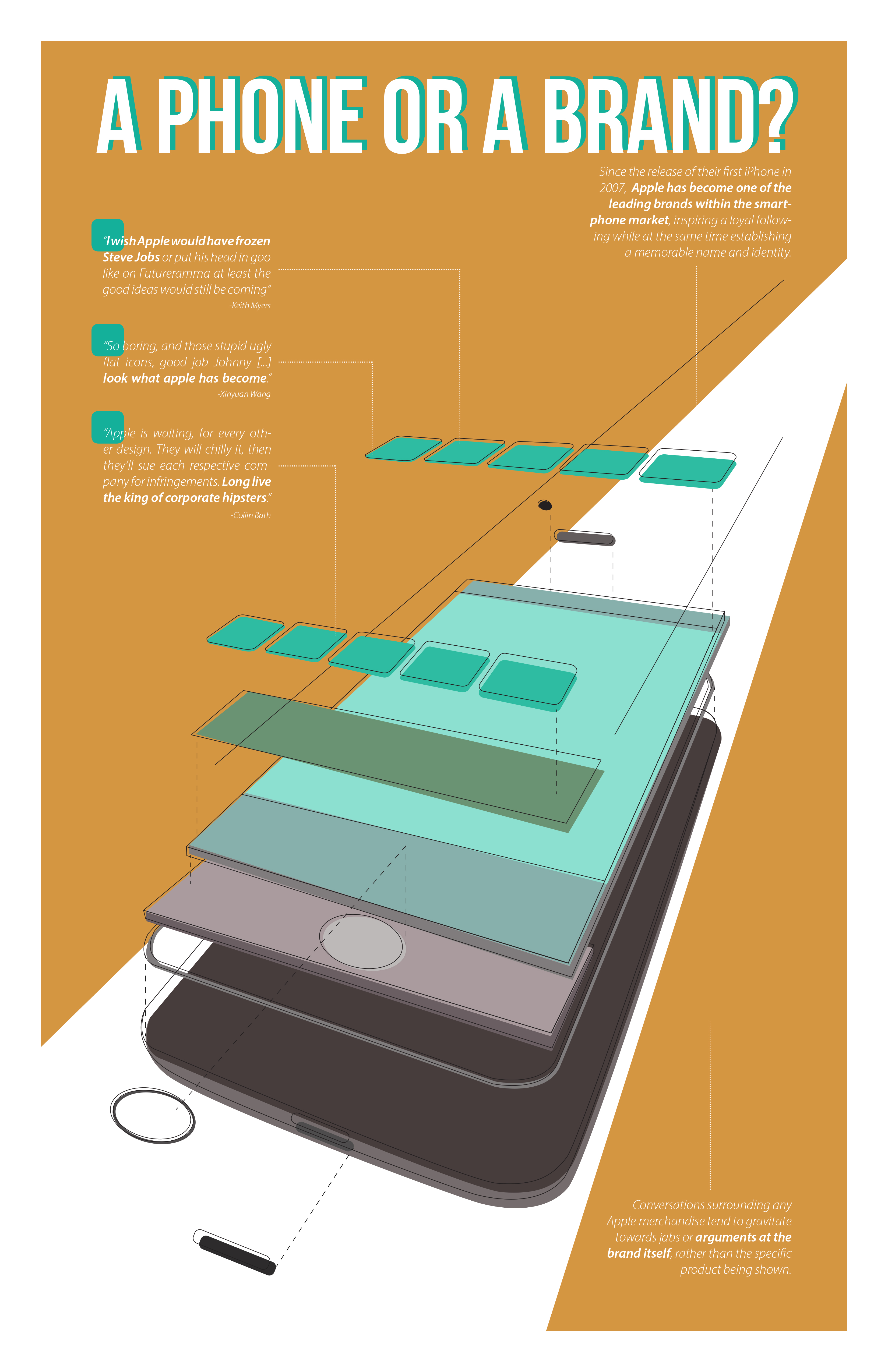 Creating a visual poster, the idea was to approach this concept by fusing imagery with some of the comments found on a photo of an iPhone (and consequent revelations).