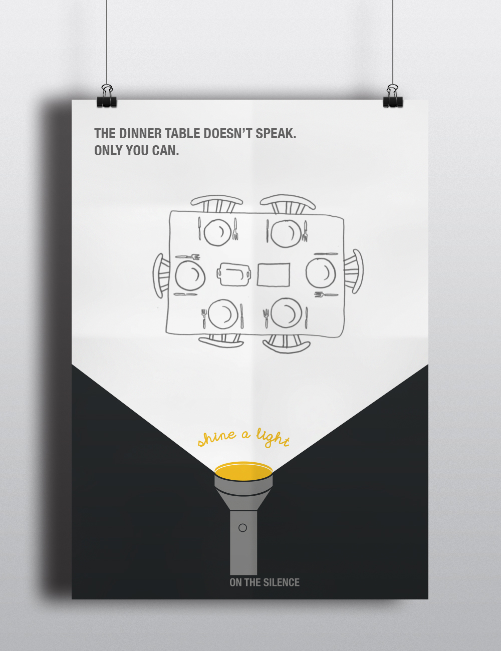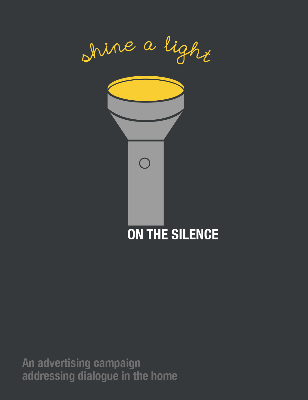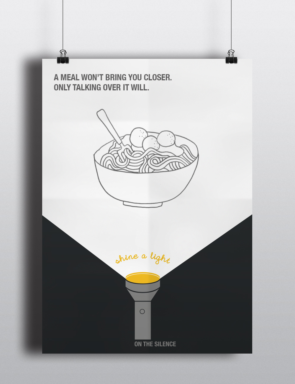 The aim of this campaign, therefore, is to highlight the effects that silence within the home can have on the relationship between parent and child, and how talking can mend the break. A simple yet overlooked message that needs to reach society if family relationships have any hope of surviving in the future. The way that the “Shine a Light” campaign aims to get this message across is primarily through a poster series, depicting typical family situations and associated objects. The aim of the posters is to highlight the fact that being in these situations does not necessarily mean that your family is building their relationships - there has to be an active effort within them to talk to one another. This is the way that intimacy grows.
