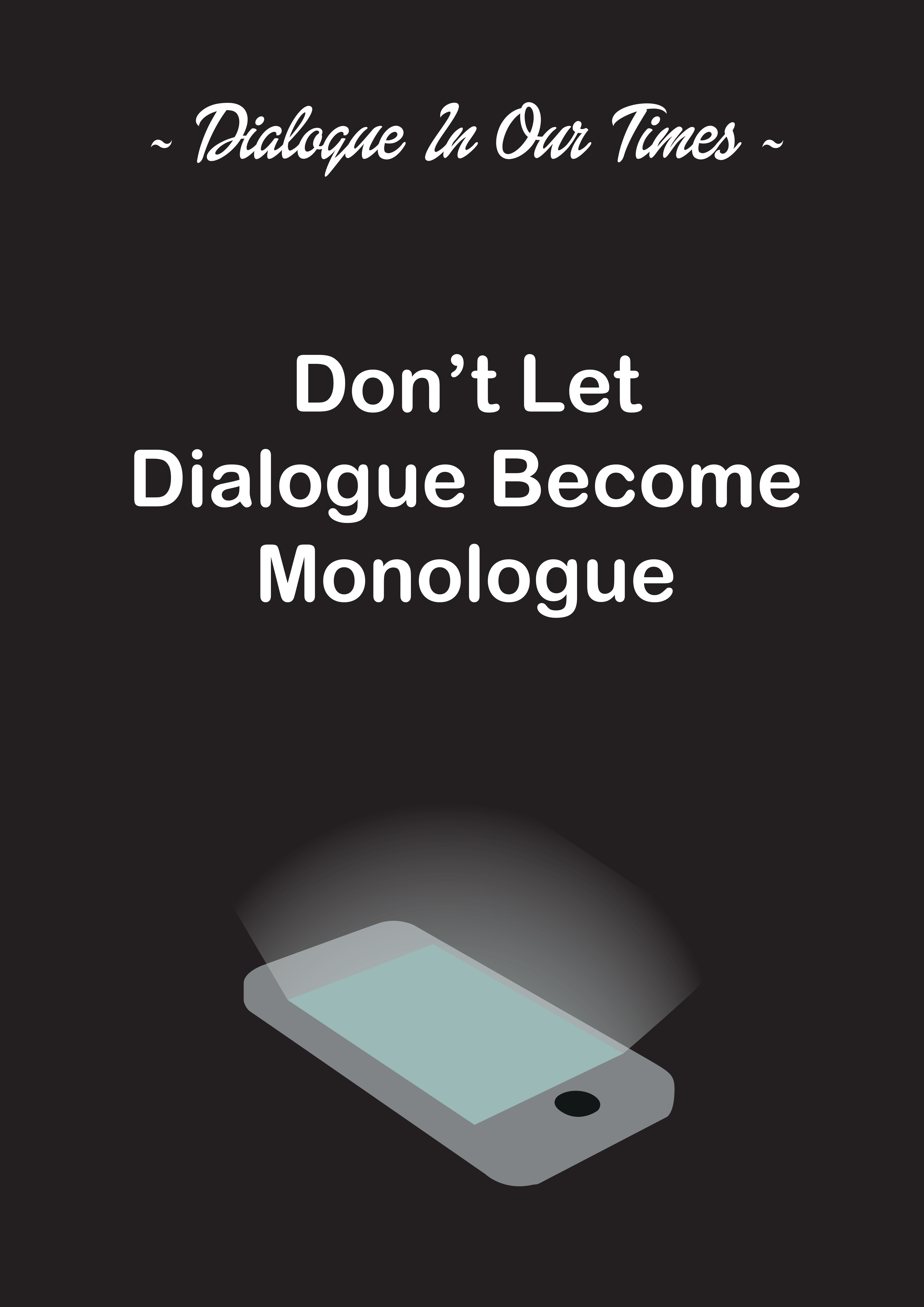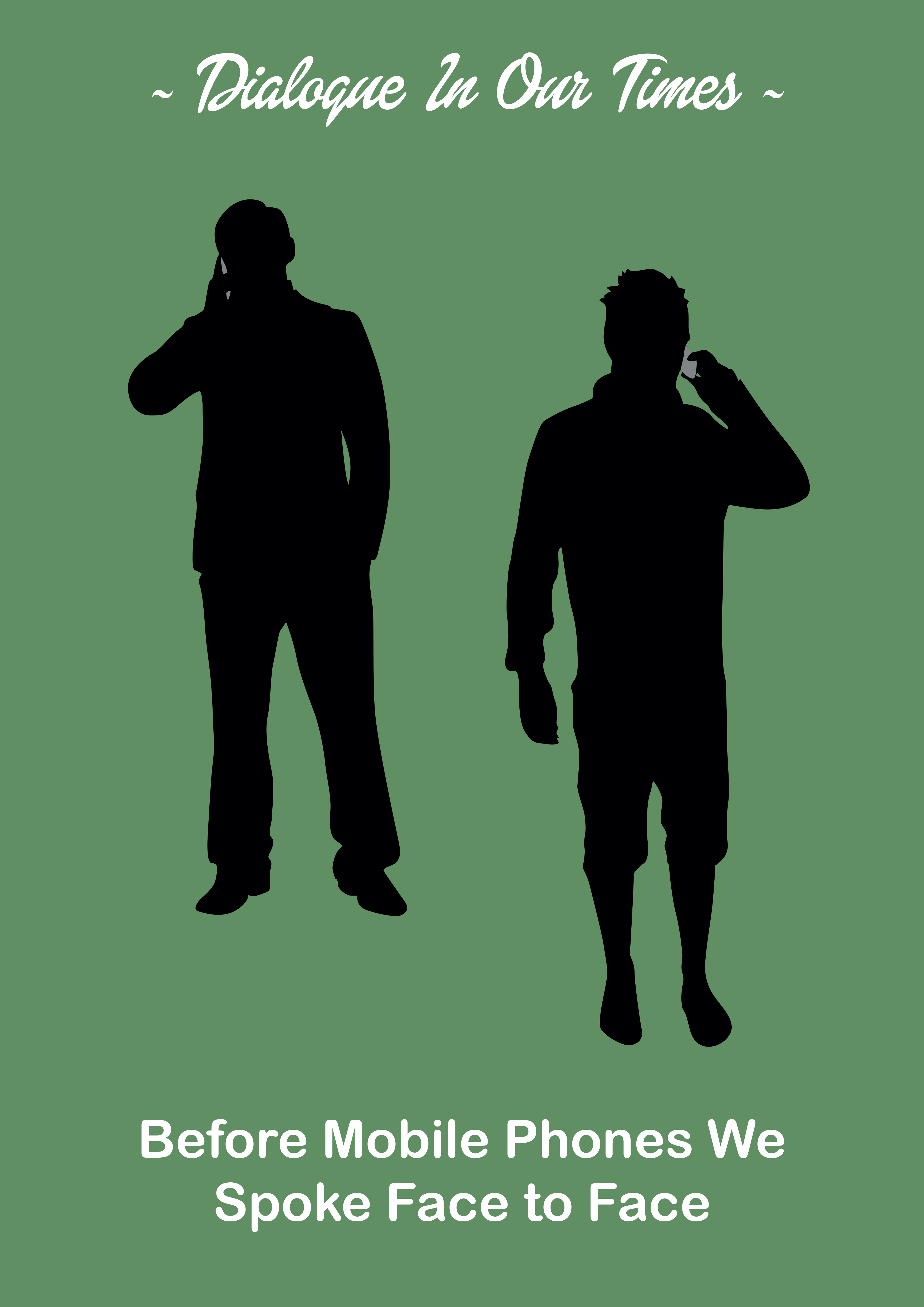 I approached my work by trying to develop and show the story of how technology has come, but to show how the growth of technology and social media has had an inversely proportional effect to how dialogue has developed, or has diminished over the past few decades. I wanted to show society how this age of interactivity is becoming interactivity within their own worlds, and how moving away from planned messages, by even working our way back through the technology developments to phone calls to create more spontaneous dialogue rather. Showing this I used a series of posters, which directly showed the issues that have burdened dialogue and created a form of monologue, showing representations of silhouettes of people from each stage of dialogue demise.