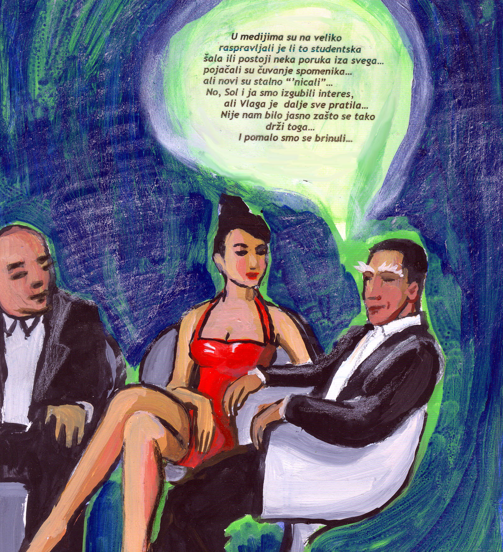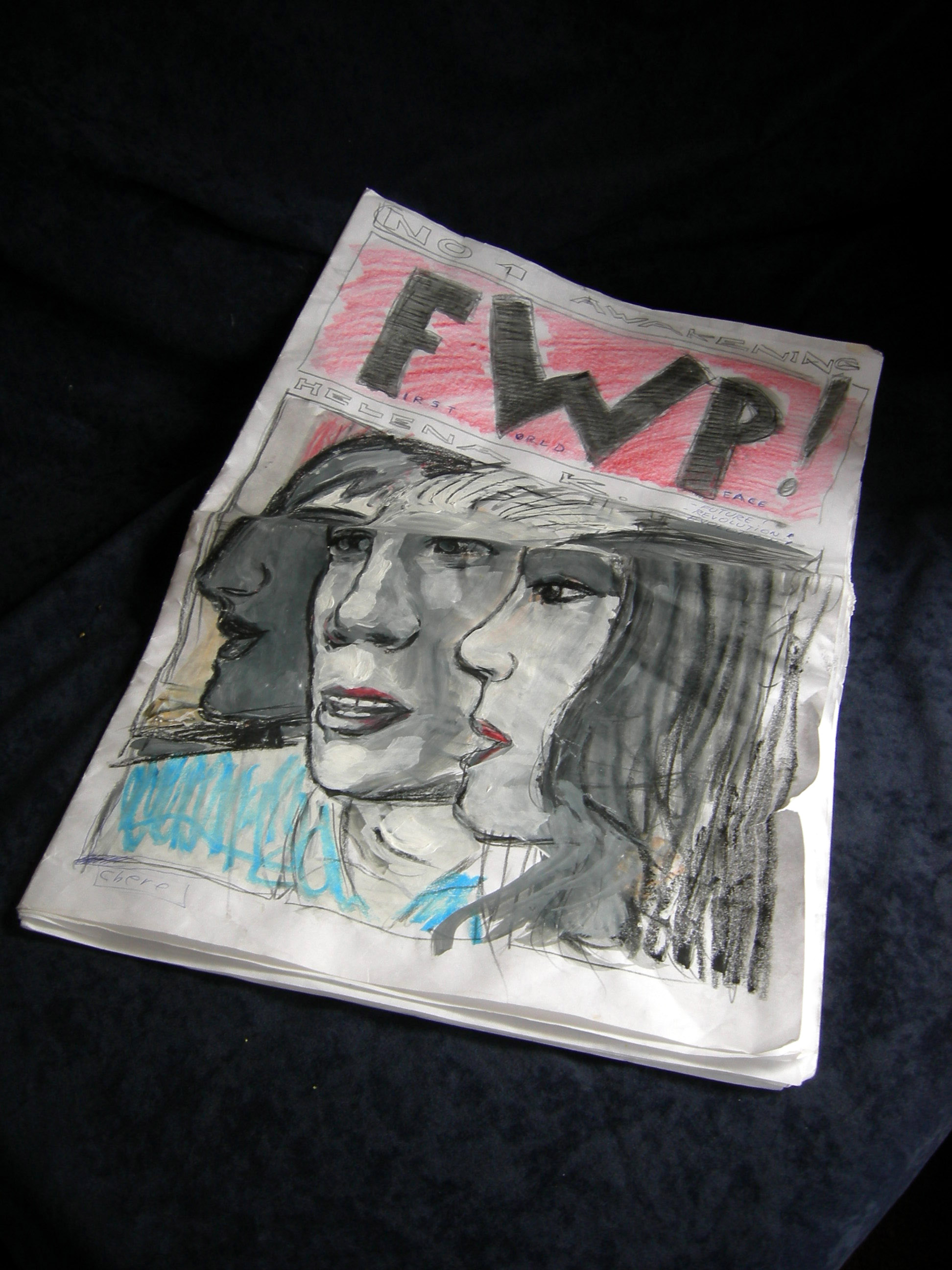 I use graphic novel language: drawings and text. Scenario (the story) is very important. Mostly always documentary/ autobiographic. I write and sketch the situations. Then I cut out the text, not to tell something twice: in text and drawings For F.W.P. I even “tested” the scenario in reality and it came to real campaign which is basic for this (partly documentary, partly fictional) work. I am trying now to promote this work in other media : as participative art action or as “performance” or as “illustrated storytelling”. In Beograd was printed 20 pages of F.W.P. story in one literature magazine: see photo. I am asking audience for their comments and critics. I am planning to organize that also other artist could make their own chapters in their own styles. This graphic novel comments and critics will be exposed regularly on internet. I would like to have “moving studio” from galleries to museums, libraries and other institutions where I would present this work . I am sourcing for collaborators, advisers and producents.