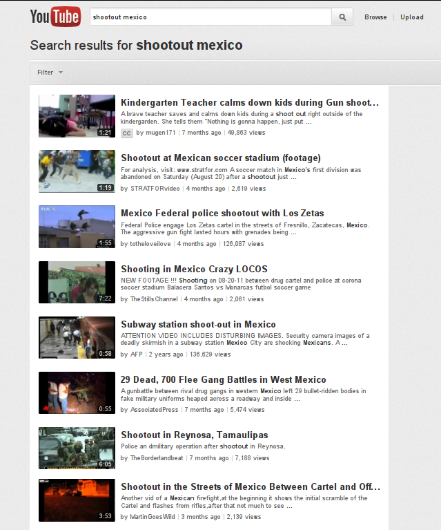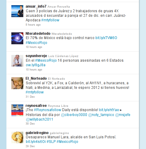RSS news channels, microblogging hashtags, and viral videos are used as sources for an electronic registry of the historic moment of militarized Mexico. The information obtained from these sources is manipulated by free software to extract sound archives which are then used to create a sound art production that places aesthetic emphasis on the media aspect of the war.